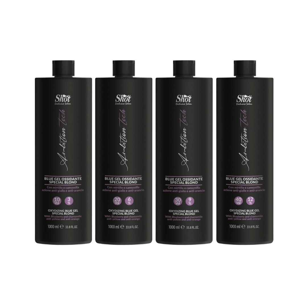 Oxidantul GEL ALBASTRU de la SHOT este special formulat pentru a neutraliza reflexele galbene sau portocalii nedorite din părul blond, oferindu-i un aspect vibrant și uniform. Conținutul său de suc de mușețel și afine nu doar protejează firul de păr, ci îl și hrănește în profunzime, pentru un rezultat final cu adevărat remarcabil. Disponibil în două puteri de oxidare, 10 vol și 30 vol, acest oxidant este alegerea perfectă pentru a-ți sublinia frumusețea naturală a părului blond.