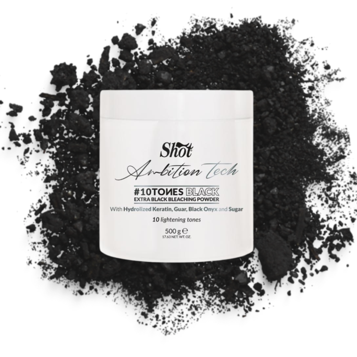 Bucură-te de rezultate uimitoare cu pudra decolorantă Shot - 10 TONURI - NEAGRĂ, un produs esențial pentru transformarea părului tău în opera de artă pe care o merita. Datorită puterii sale impresionante de deschidere de până la 9-10 tonuri, această pudră neagră nevolatilă este partenerul perfect în orice provocare de coafură. Formula sa inovatoare, îmbogățită cu pigmenti speciali de onix negru, asigură neutralizarea eficientă a tonurilor nedorite de galben sau portocaliu, garantând rezultate ireproșabile de fiecare dată. Cu această pudră de decolorare, vei experimenta o nouă dimensiune a coafurii, îndrăznind să-ți transformi părul într-o expresie autentică a stilului tău.
