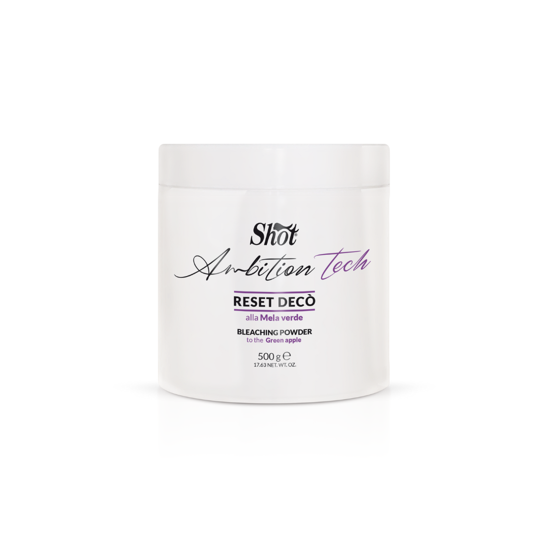 Descoperă secretul unei decolorări reușite cu pudra decolorantă Reset Deco - Mar Verde de la Shot. Fabricată în Italia, această formulă profesională este ideală pentru a-ți transforma coafura în cea mai recentă tendință, fără să-ți compromiți sănătatea părului. Datorită puterii sale de deschidere și a mirosului proaspăt de măr verde, Reset Deco oferă o experiență plăcută și rezultate de înaltă calitate.